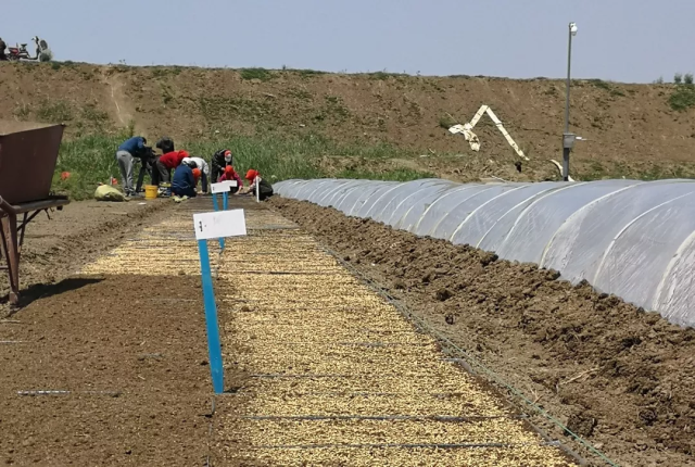 研究人員:“你看那塊已經(jīng)有發(fā)綠的了。邊上那兩個(gè),發(fā)綠了,可以長(zhǎng)出苗來(lái)了!