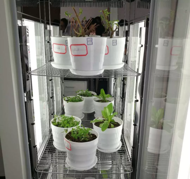 青島海水稻研發(fā)中心有個(gè)培養(yǎng)室,取了不同地區(qū)不同含鹽量的土壤,模擬了自然光照等條件,試種玫瑰、苜蓿等。
